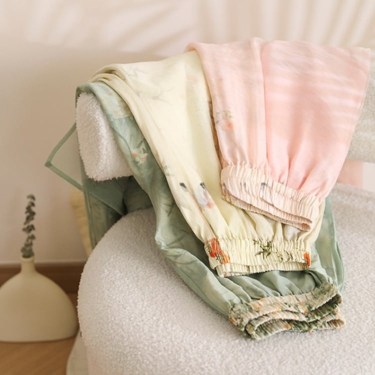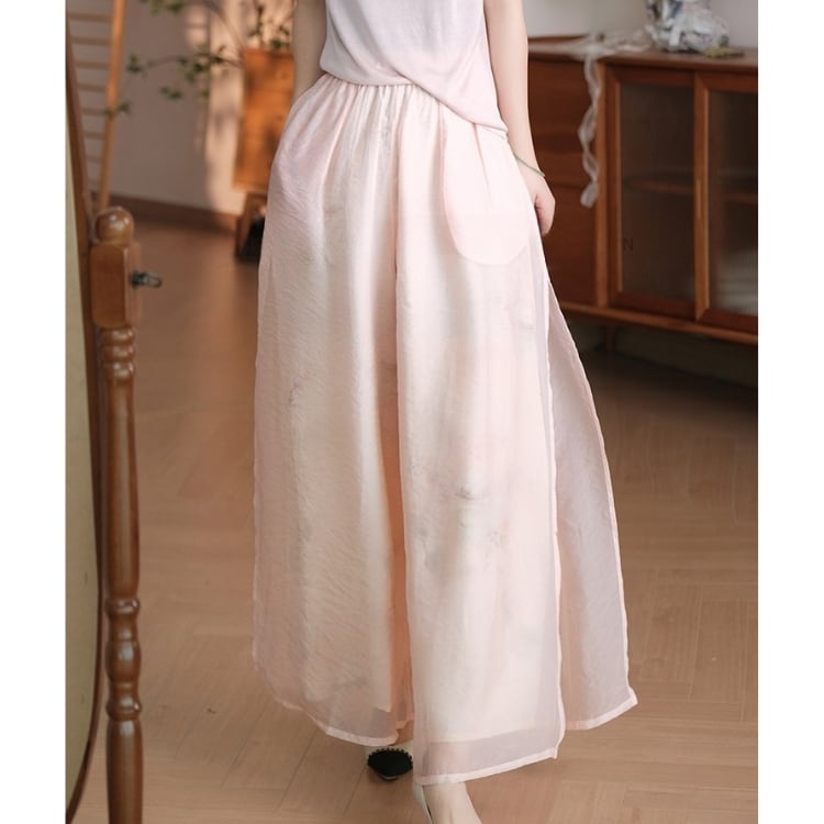 サイドスリット入り 中国風プリントワイドロングパンツ 3カラー YS00002