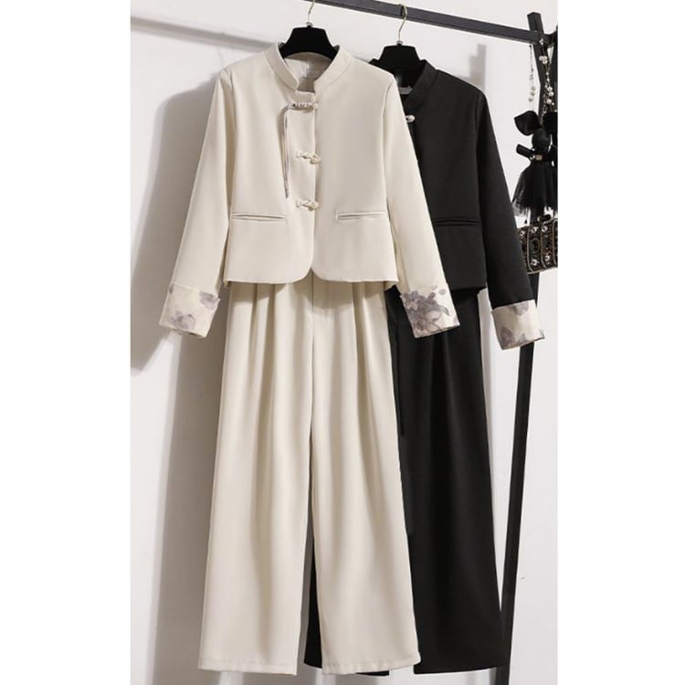 チャイナボタンジャケット&ワイドストレートパンツ セットアップ 2カラー YS00004