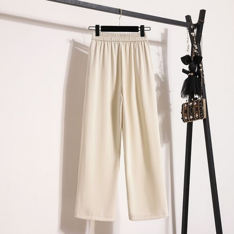 すっきりとしたシルエットのワイドパンツを組み合わせたセットアップ。