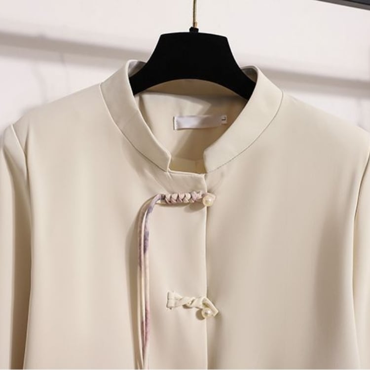 シンプルながらも中華テイストが光る一着で、日常にも特別な日にも活躍します。
