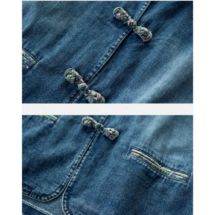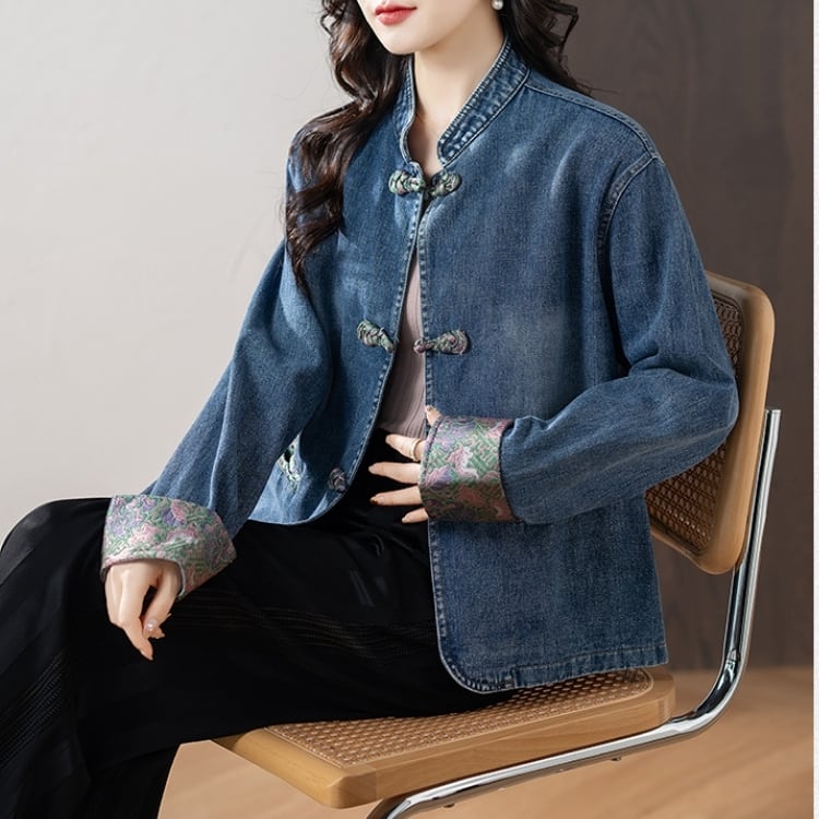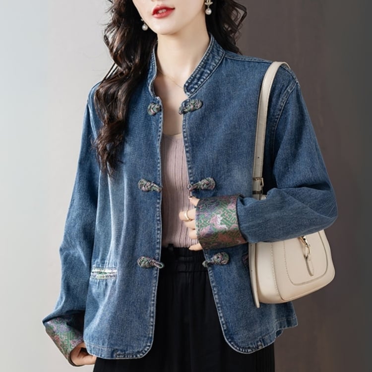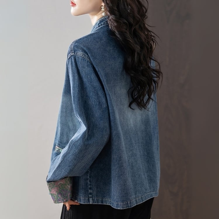 チャイナボタンデニムジャケット 花柄デザイン袖 YS00005