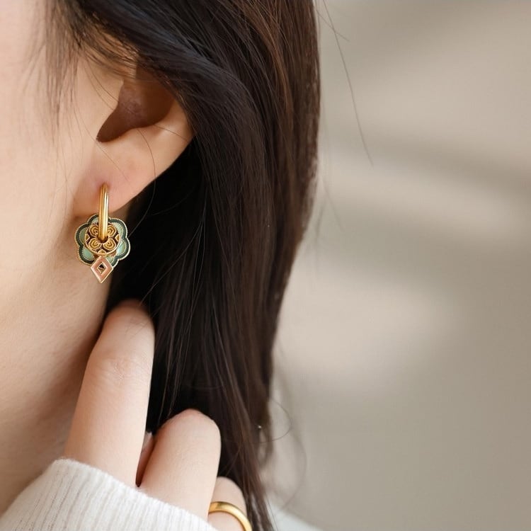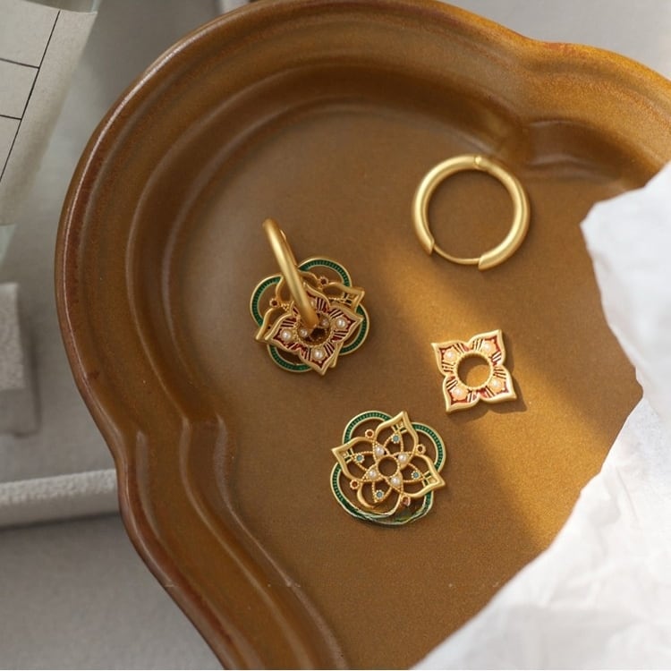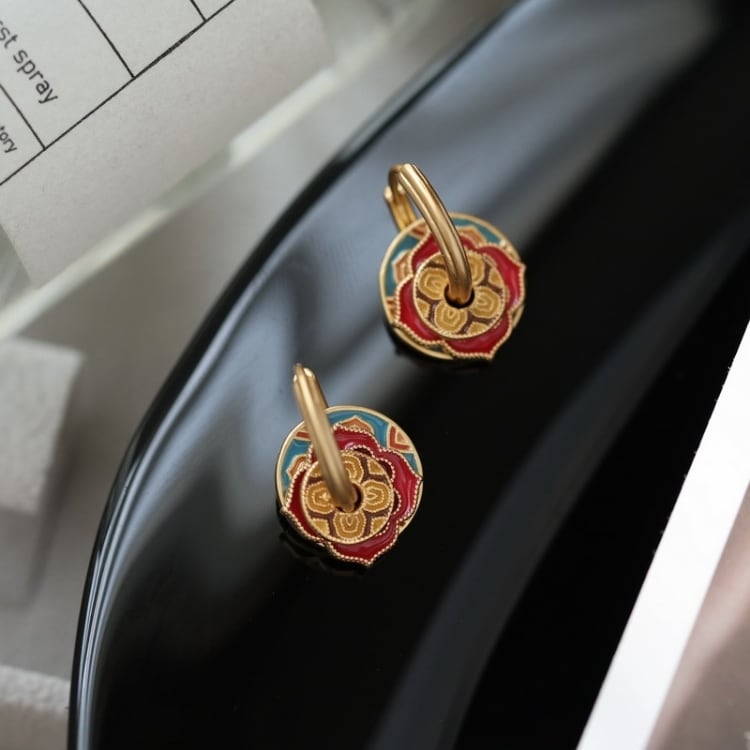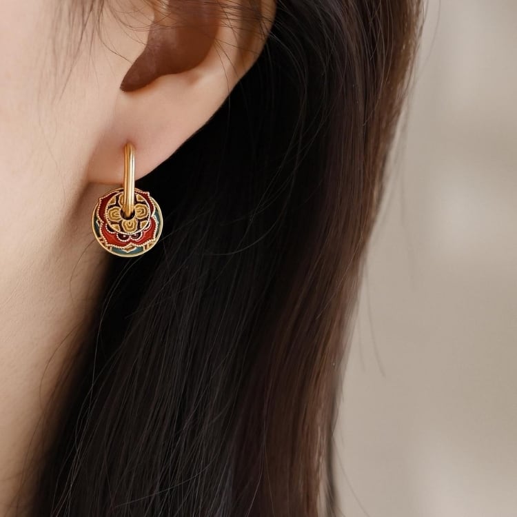 モダンチャイナ彩色フープピアス 4種から選択 YS00006