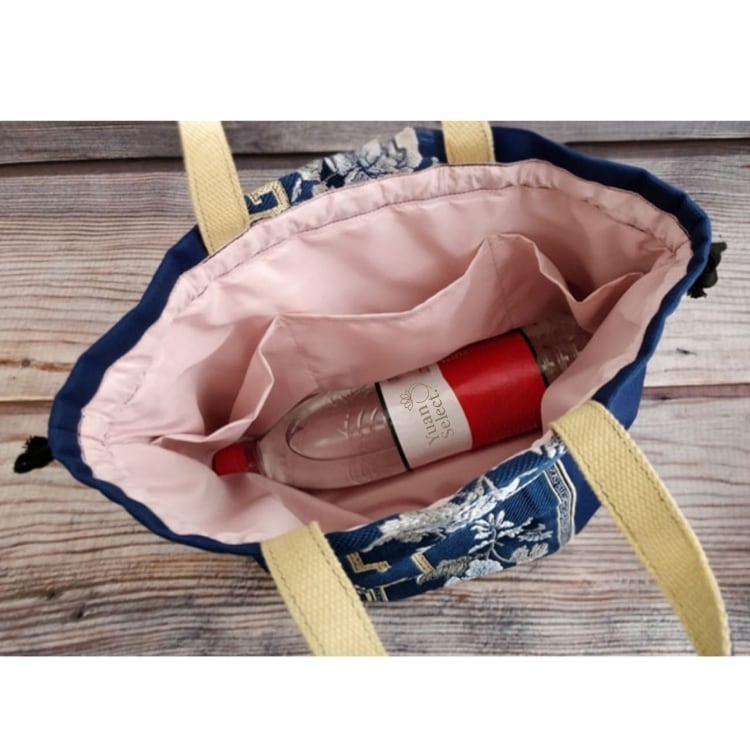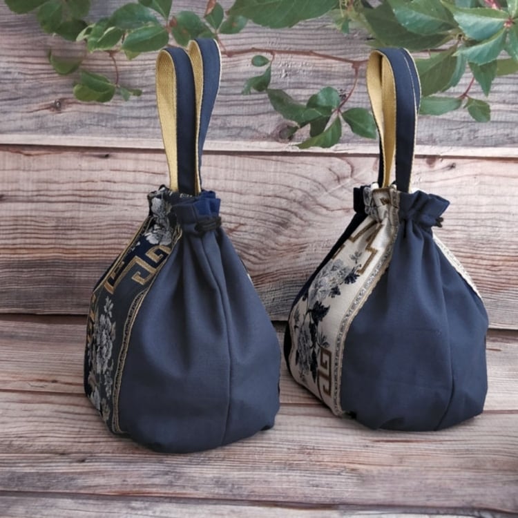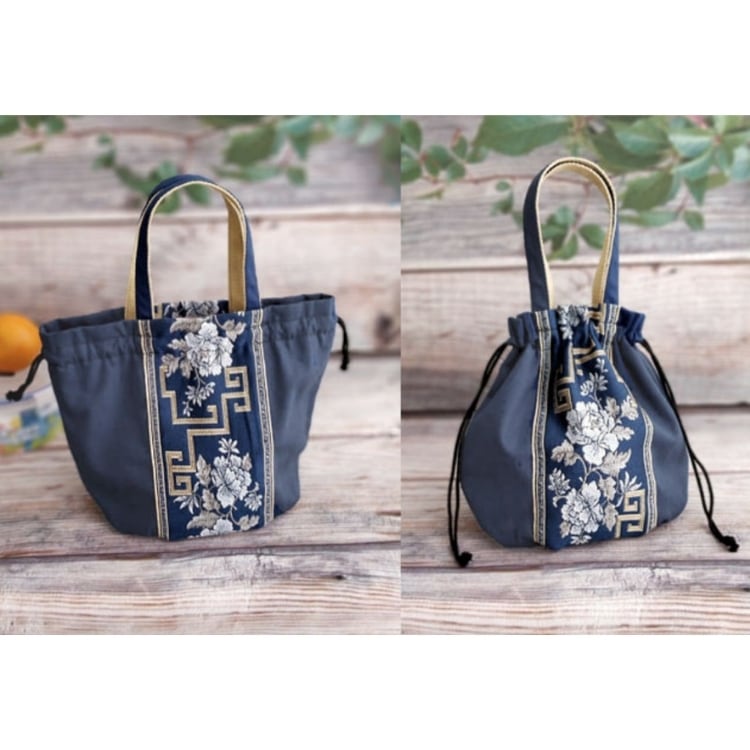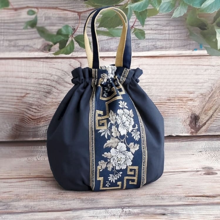 手刺繍入り巾着型ハンドバッグ 2カラー YS00007