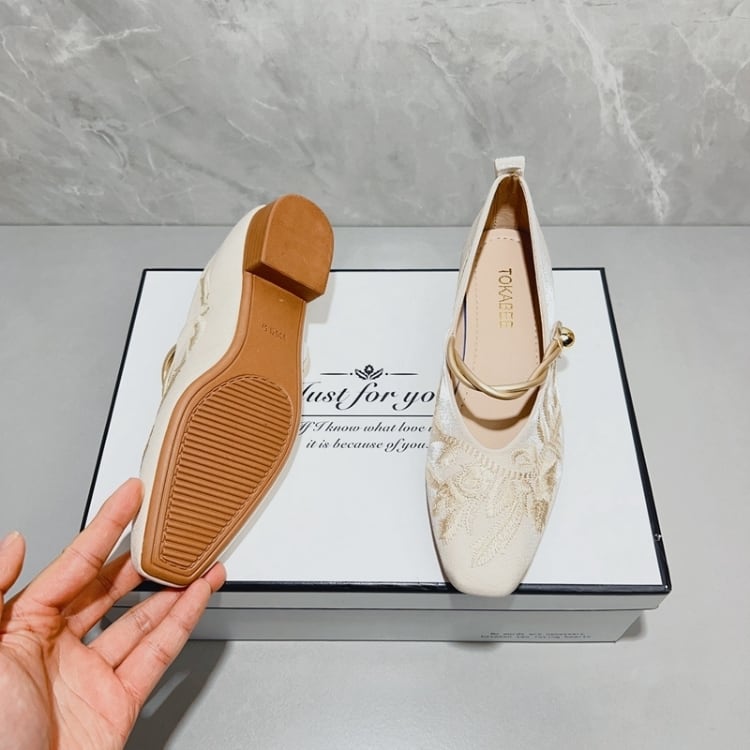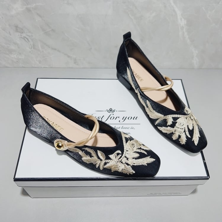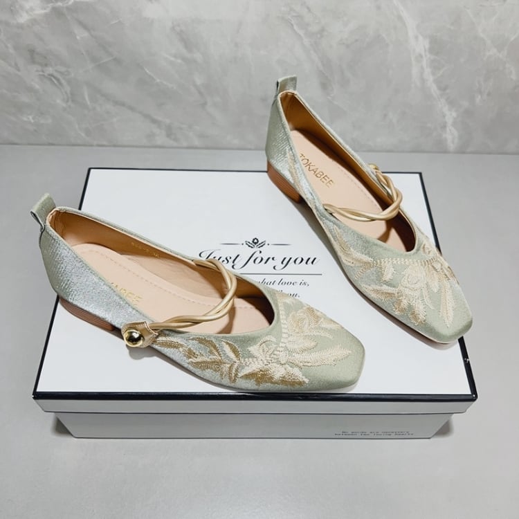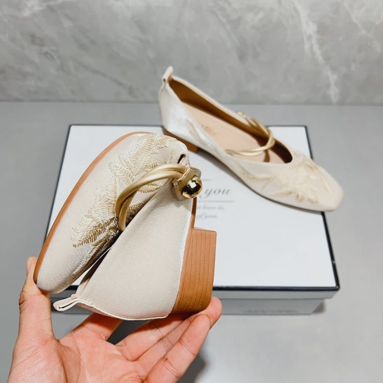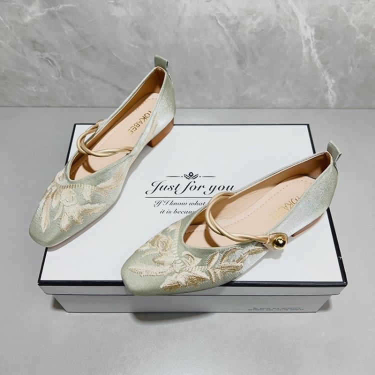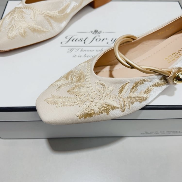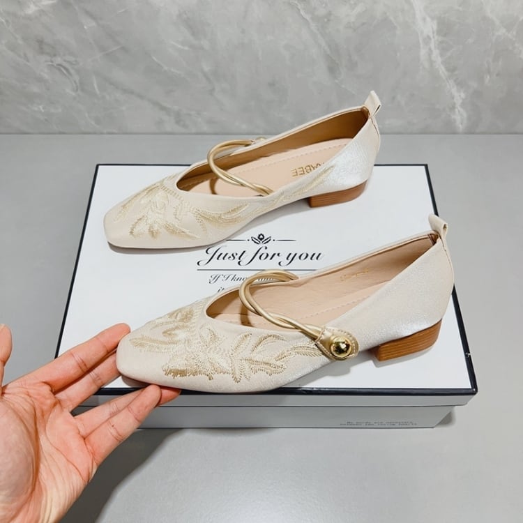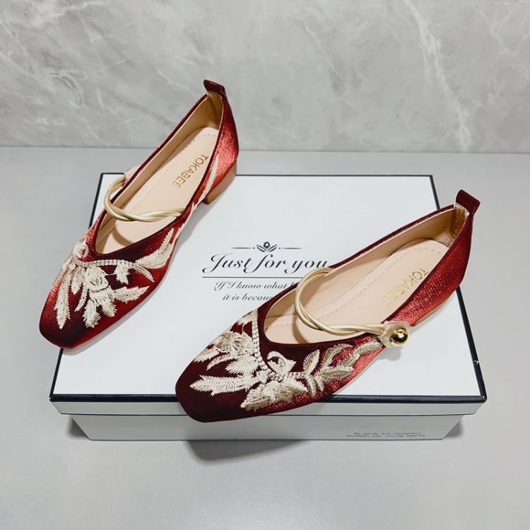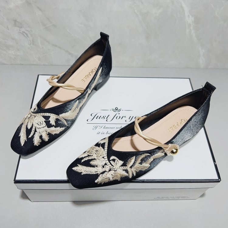 刺繍入りモダンチャイナローヒールシューズ YS00008
