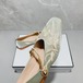 甲にかかる華奢なストラップとゴールドボタンが上品なアクセントに。