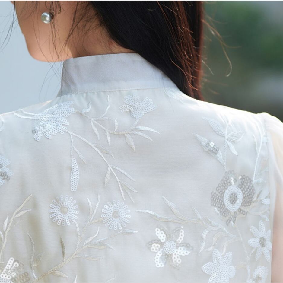 透け感のある袖が上品な抜け感を演出し、清楚でありながら華やかな印象に。