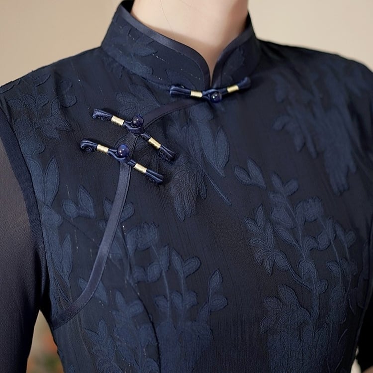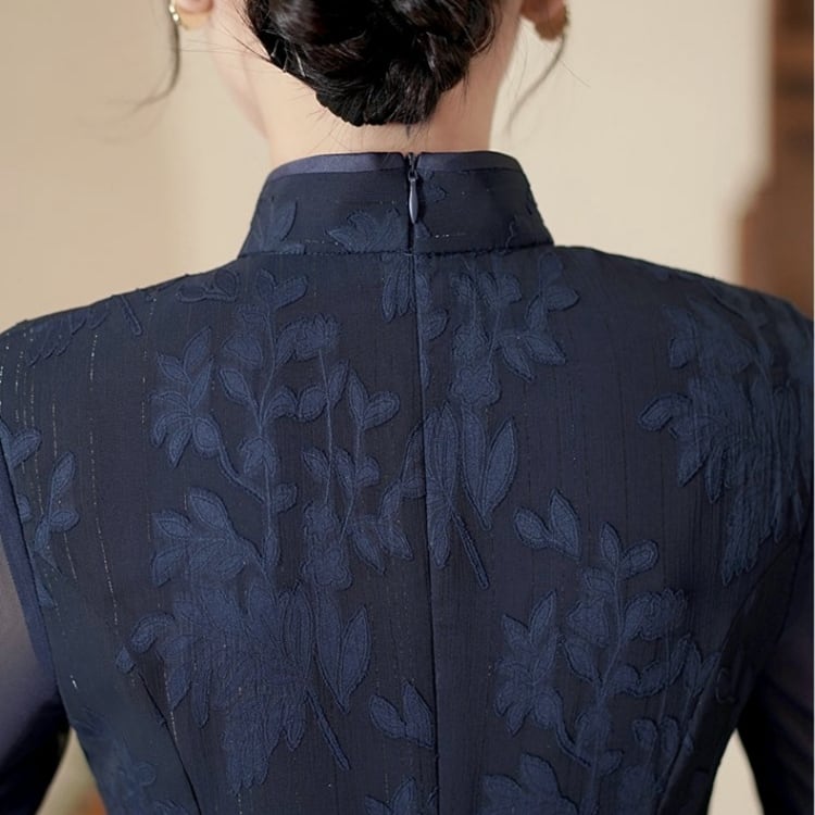 繊細なジャカード模様と透け感のある袖が、落ち着いた華やかさを演出します。