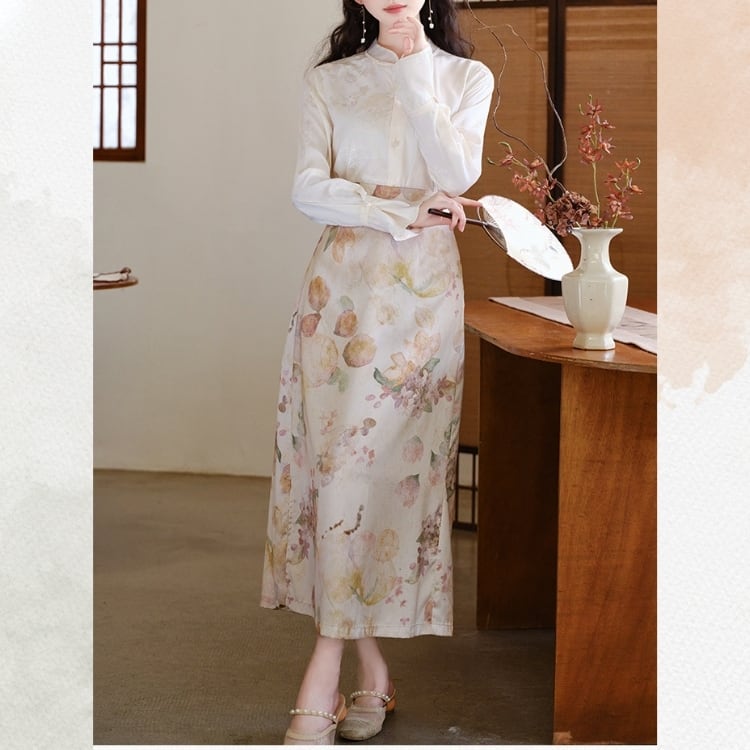 トップスとスカートを合わせれば、凛とした雰囲気の中に穏やかな温もりが漂い、