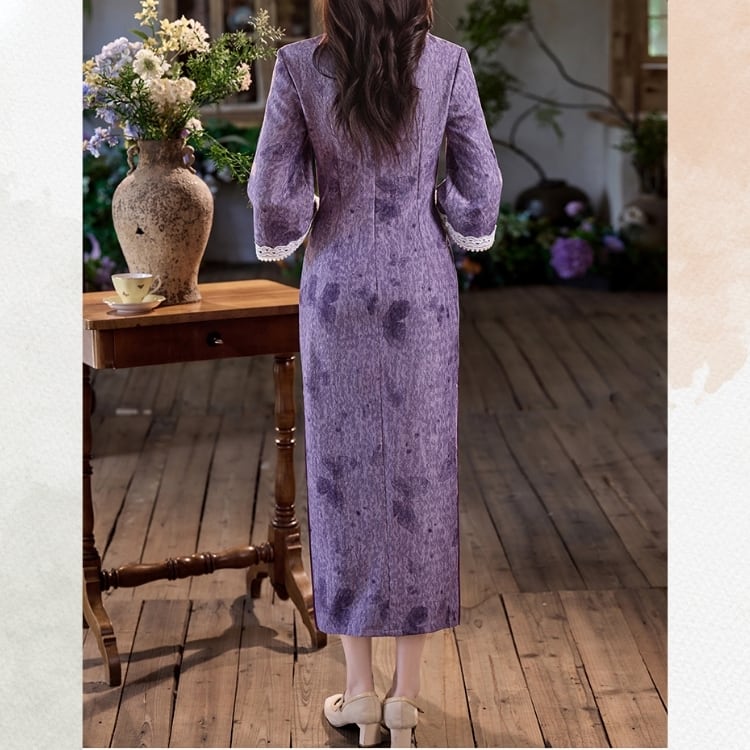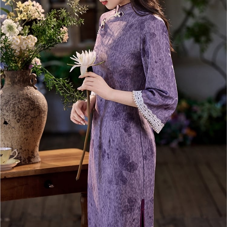 レース袖口 クラシカル旗袍ワンピース YS00045