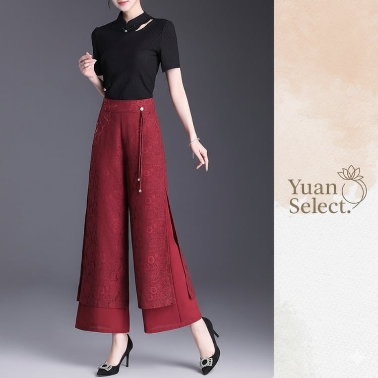 花模様ジャカード ワイドパンツ 4カラー YS00052