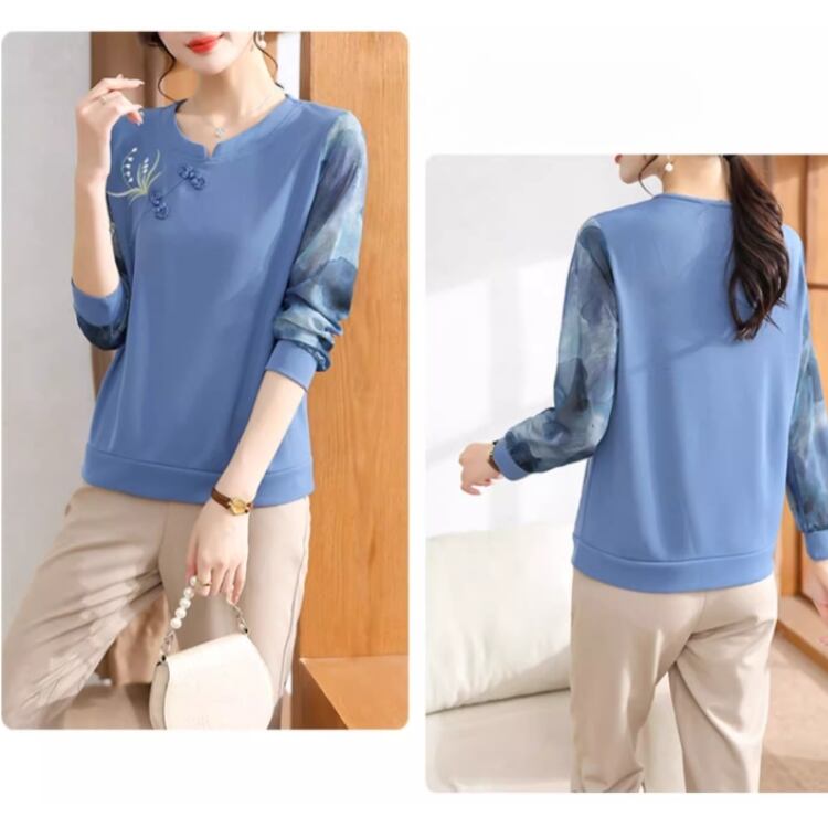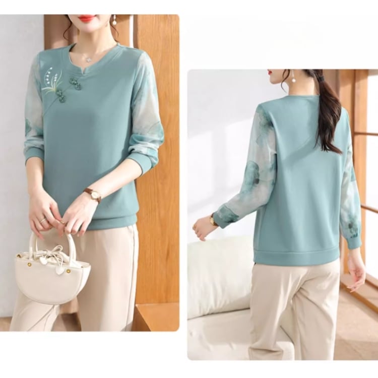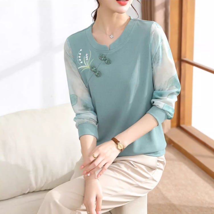 グラデーションスリーブ 花刺繍チャイナトップス 3カラー YS00100