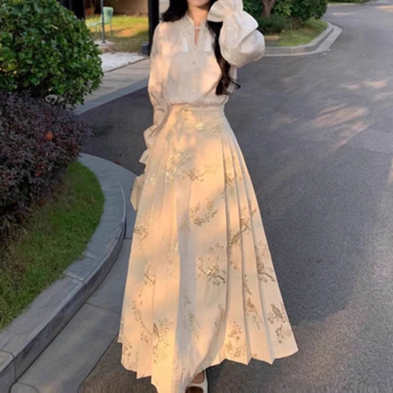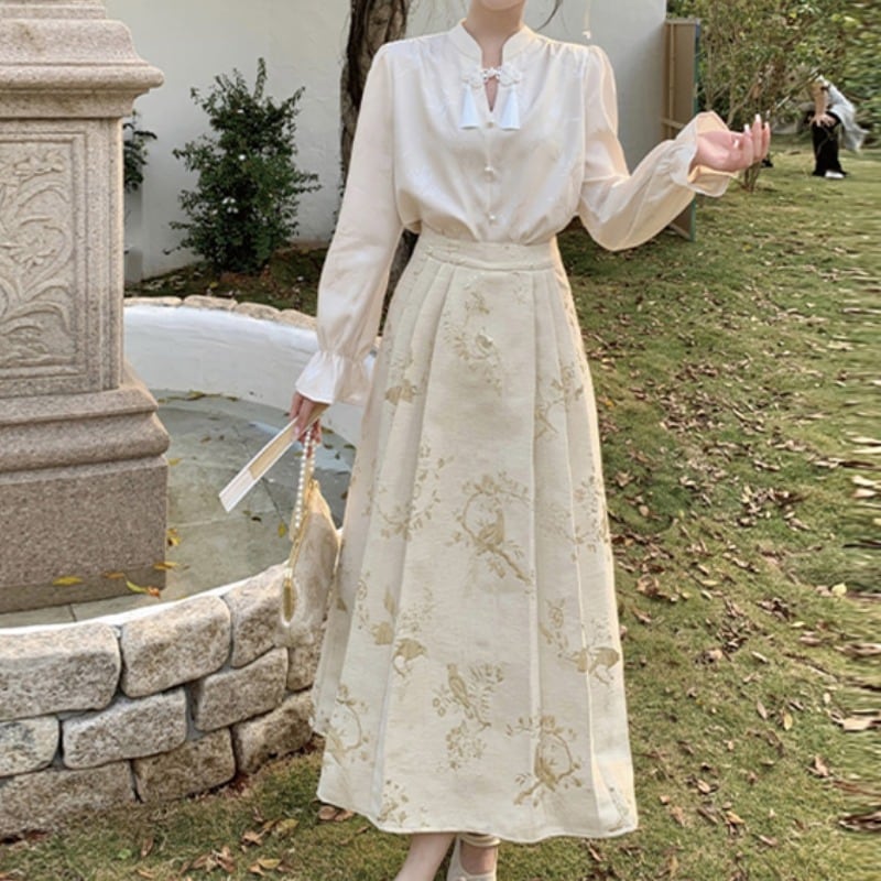 モダンチャイナトップス 金糸刺繍ロングスカート セットアップ YS00022