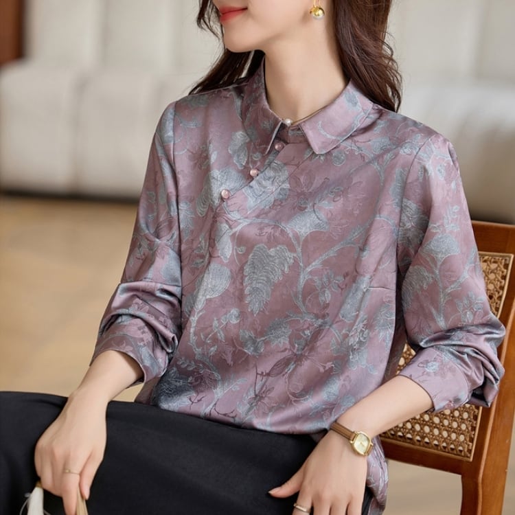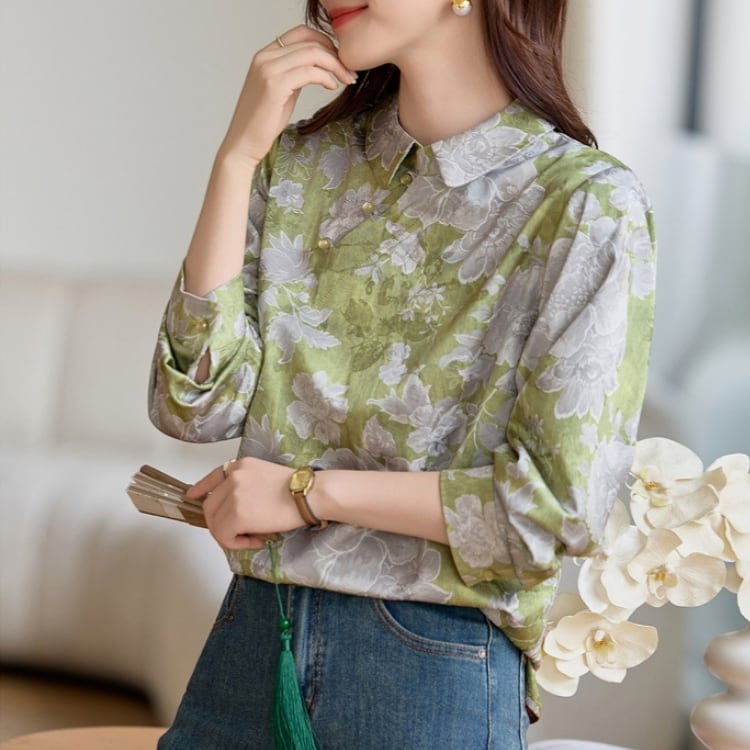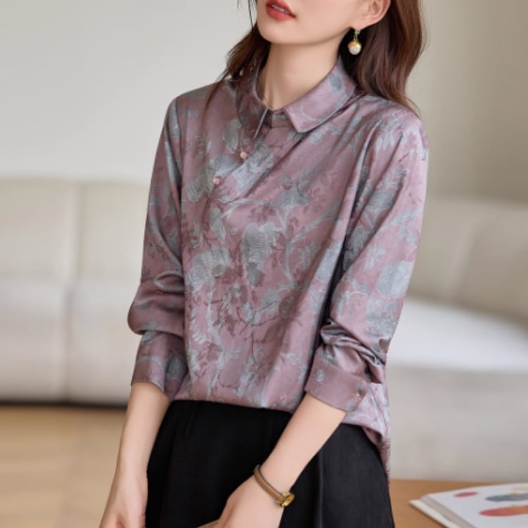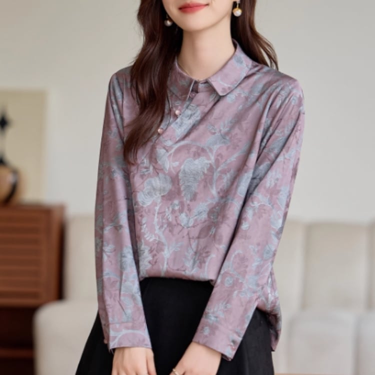 植物文様ジャカード クラシカルブラウス 2カラー YS00119