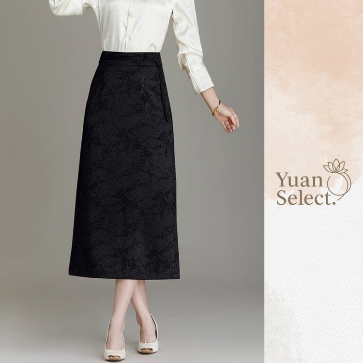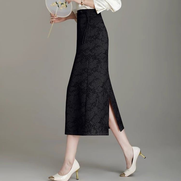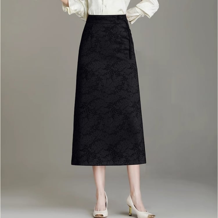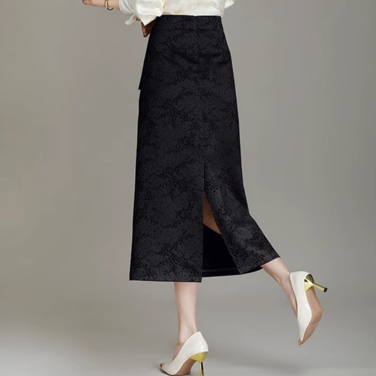 ジャカード バックスリットロングスカート 2カラー YS00128