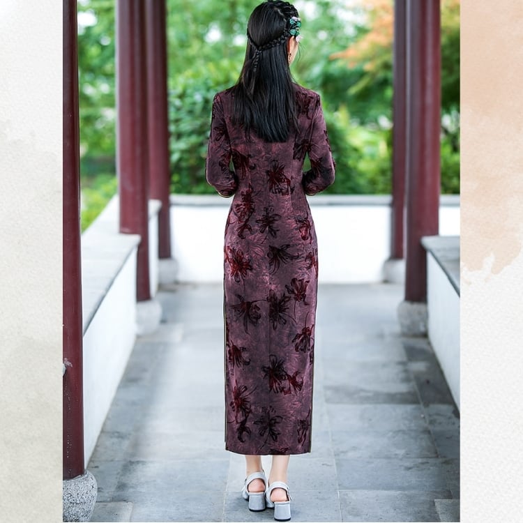 花柄ベルベット 旗袍ワンピース YS00072