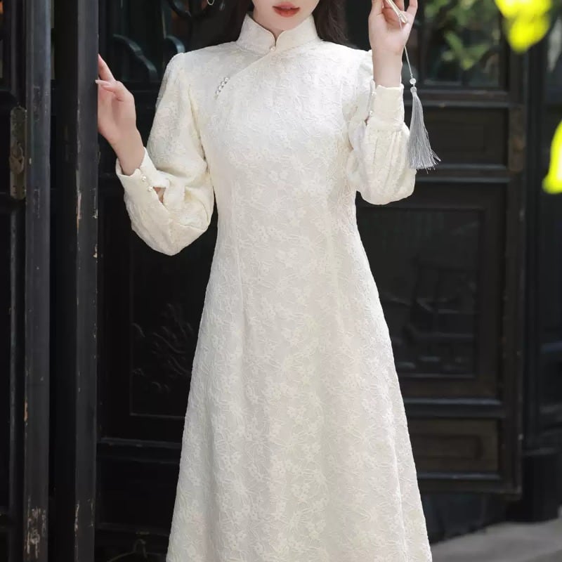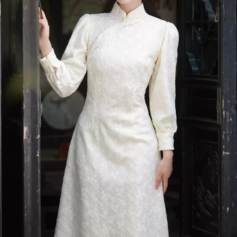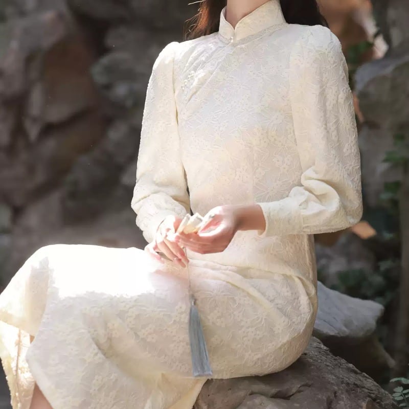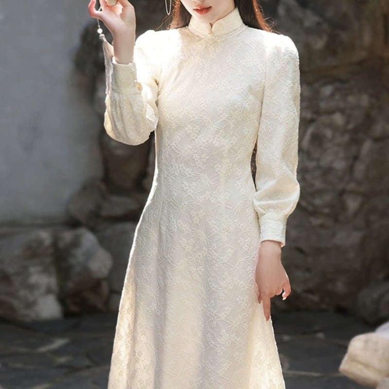 繊細なジャカード生地が織りなす、上品なロングワンピース。