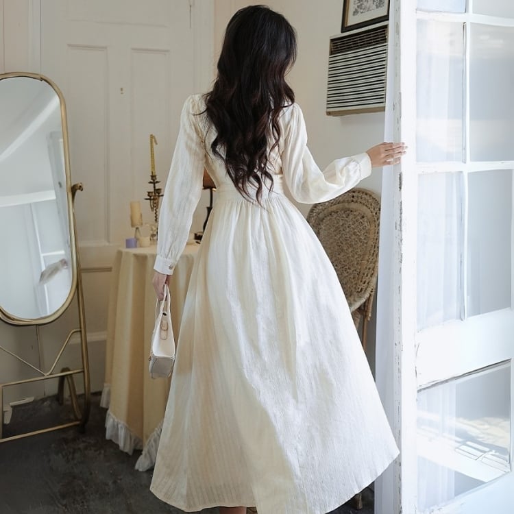胸元に繊細な刺繍をあしらったロングワンピース。