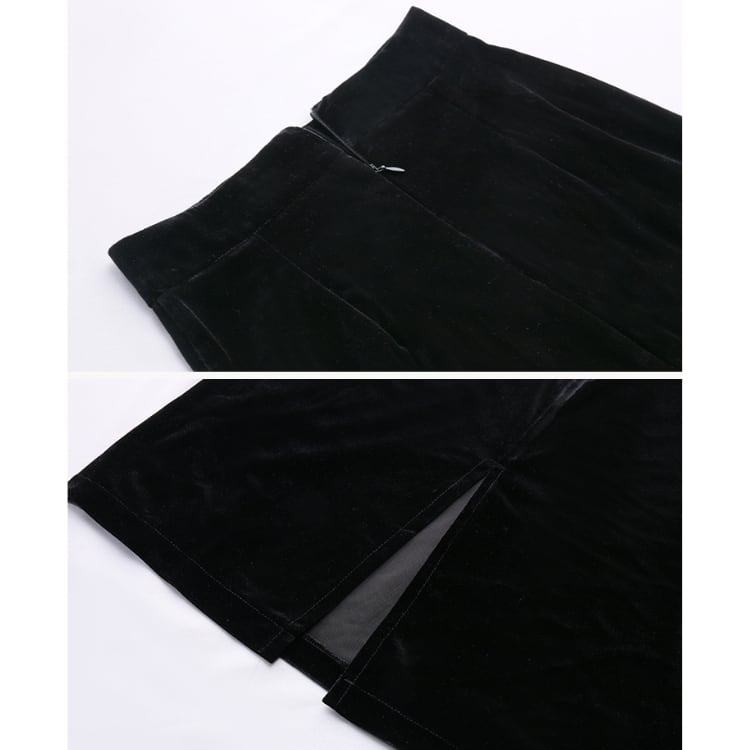 スカートはシンプルなIラインシルエットで、品のある佇まいを演出します。
