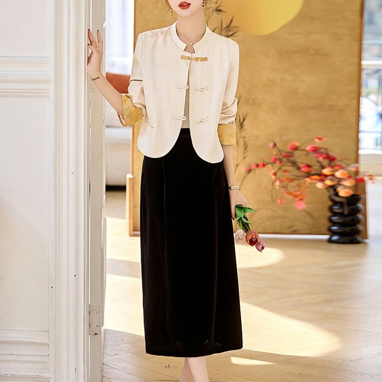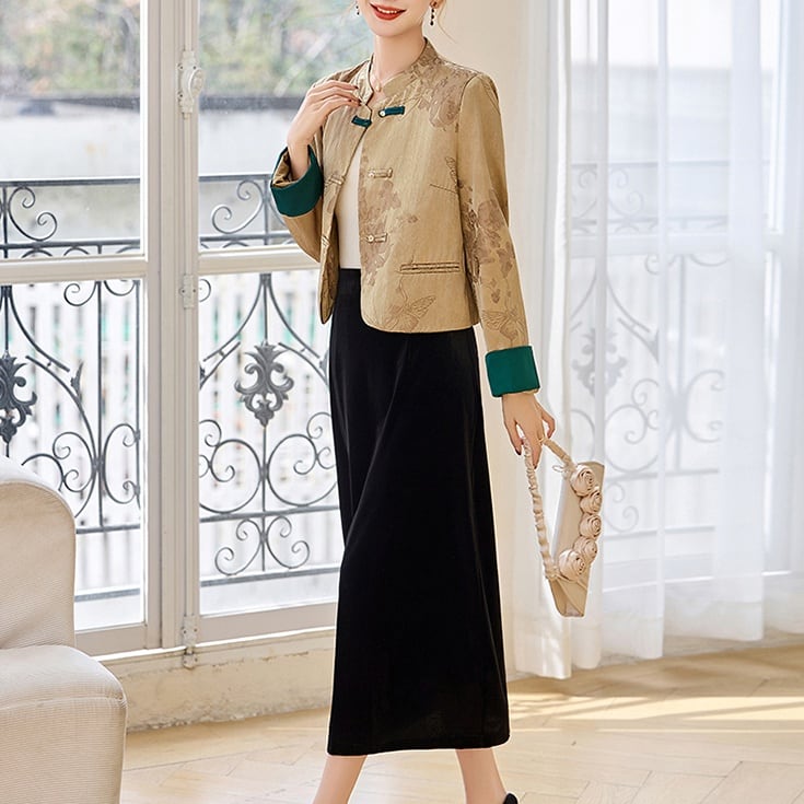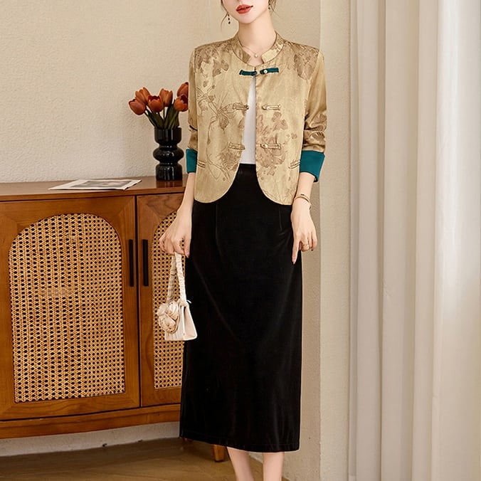 ジャカード織チャイナジャケット×スカート セットアップ 2カラー YS00097