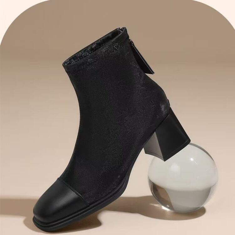 異素材の組み合わせが美しい、チャイナテイストなショートブーツ。