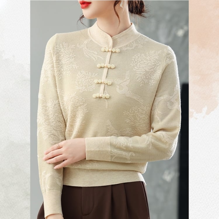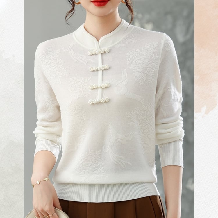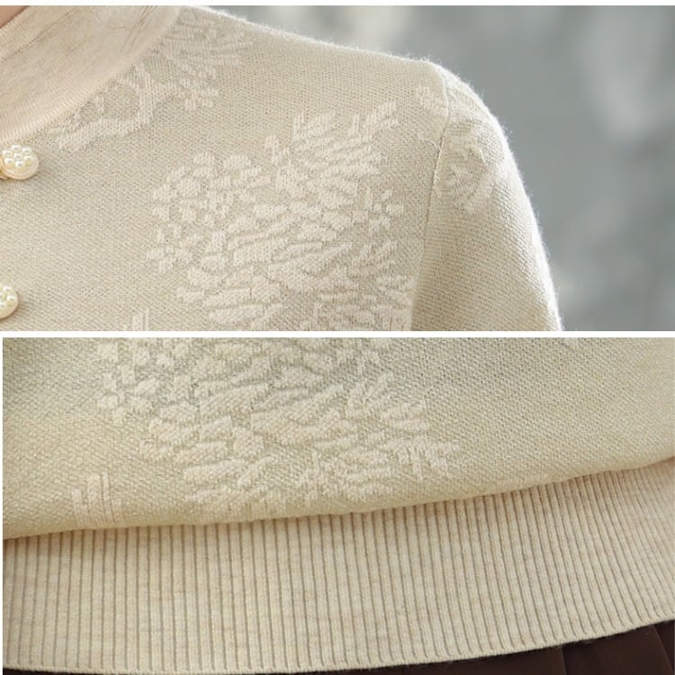 パールチャイナボタン ジャカードニットトップス 3カラー YS00155