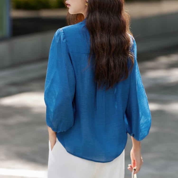 ふんわりとしたバルーンスリーブが魅力のシンプルなブラウス。
