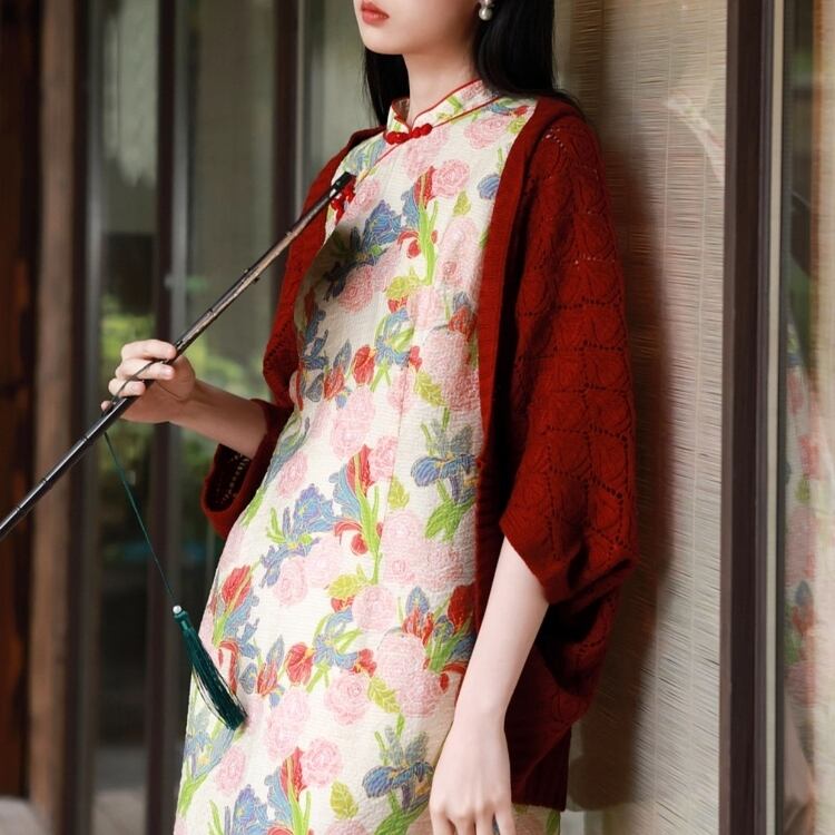 旗袍(チャイナドレス)の上に合わせれば、上品でクラシックな雰囲気に。