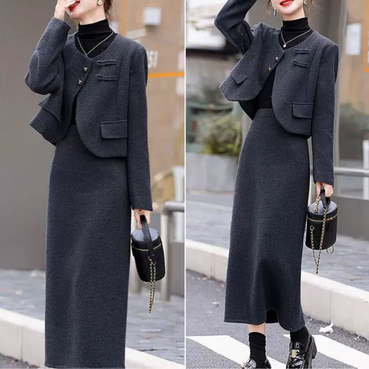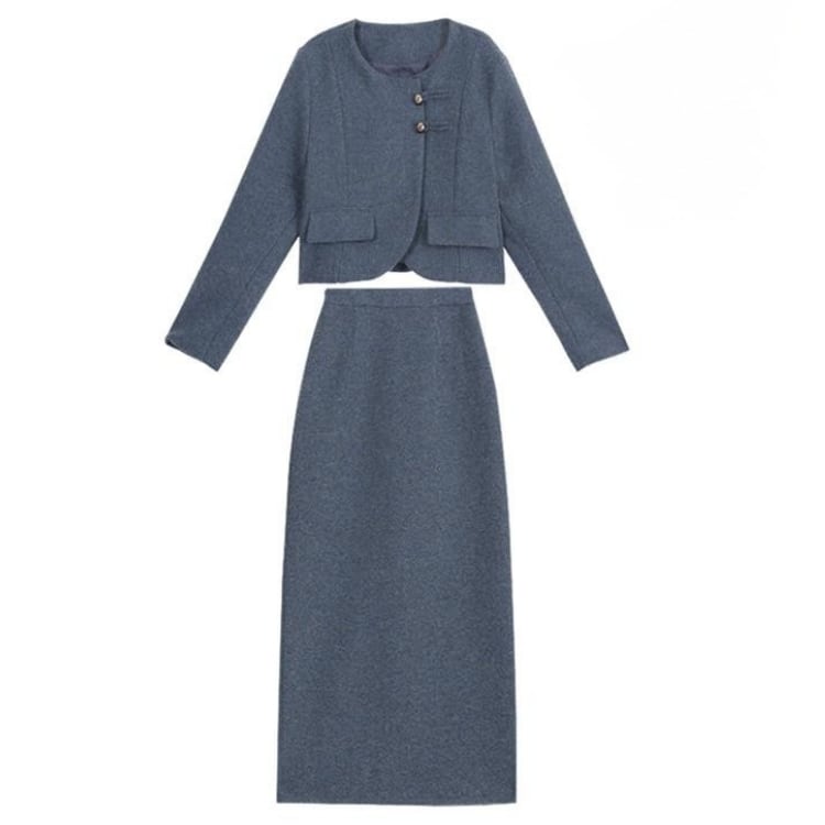チャイナボタンノーカラージャケット×タイトスカートセットアップ 2カラー YS00184