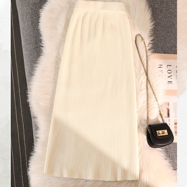 チャイナボタン リブニットタイトスカート 5カラー YS00199