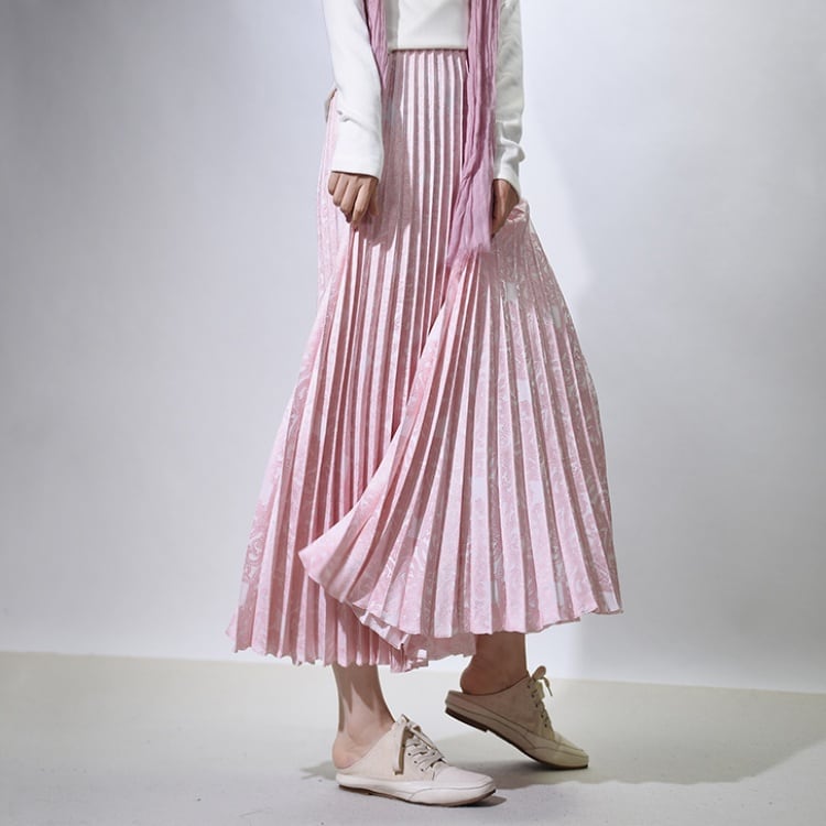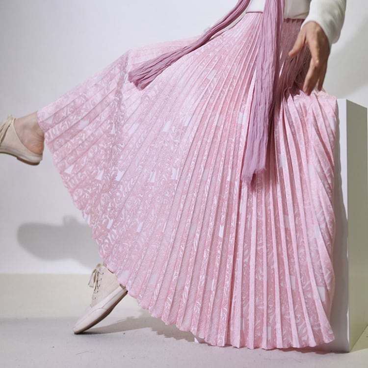 繊細なジャカード生地を贅沢に使用したプリーツスカート。