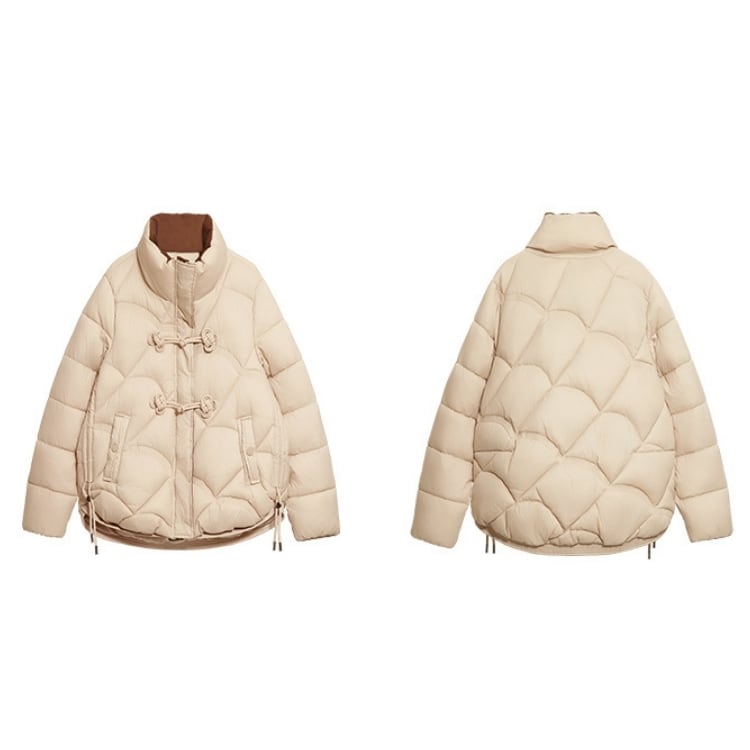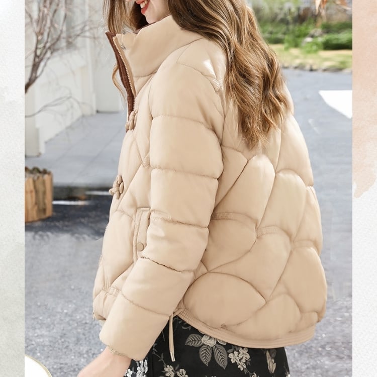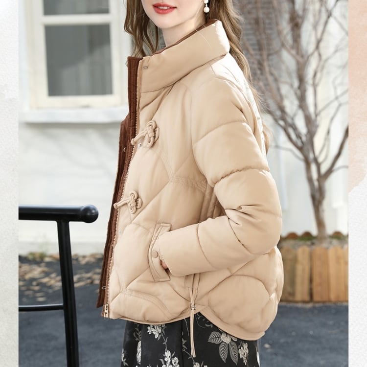 ふっくらと暖かい着心地に、立ち襟とチャイナボタンを添えた上品なショートダウン。
