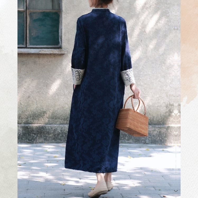 刺繍袖 ゆったりチャイナロングワンピース 2カラー YS00190