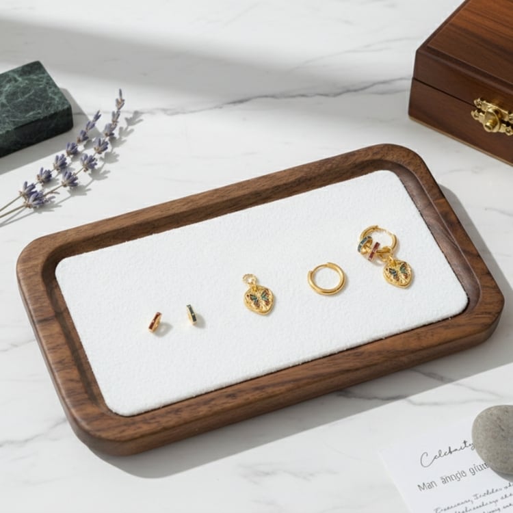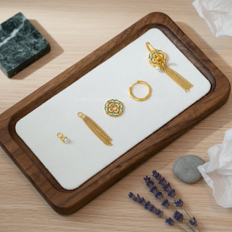 静かにきらめくモチーフが横顔に落ち着いた華を添え、日常の装いを上品にまとめてくれます。