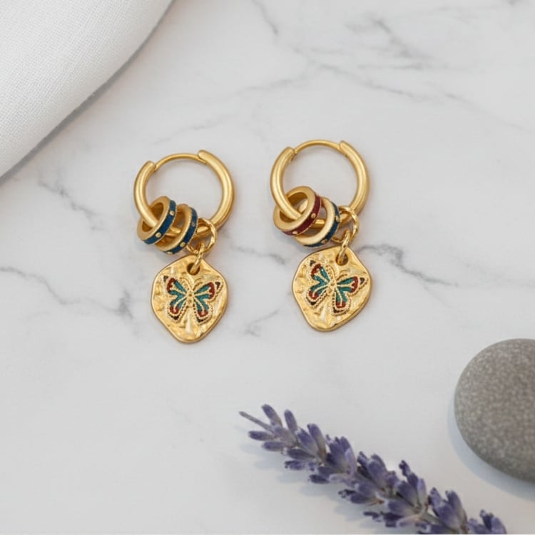 繊細な七宝の彩りと、やわらかなゴールドの輝きを組み合わせた大人のピアス。