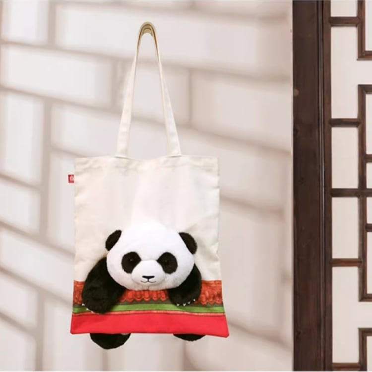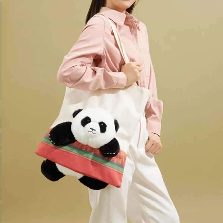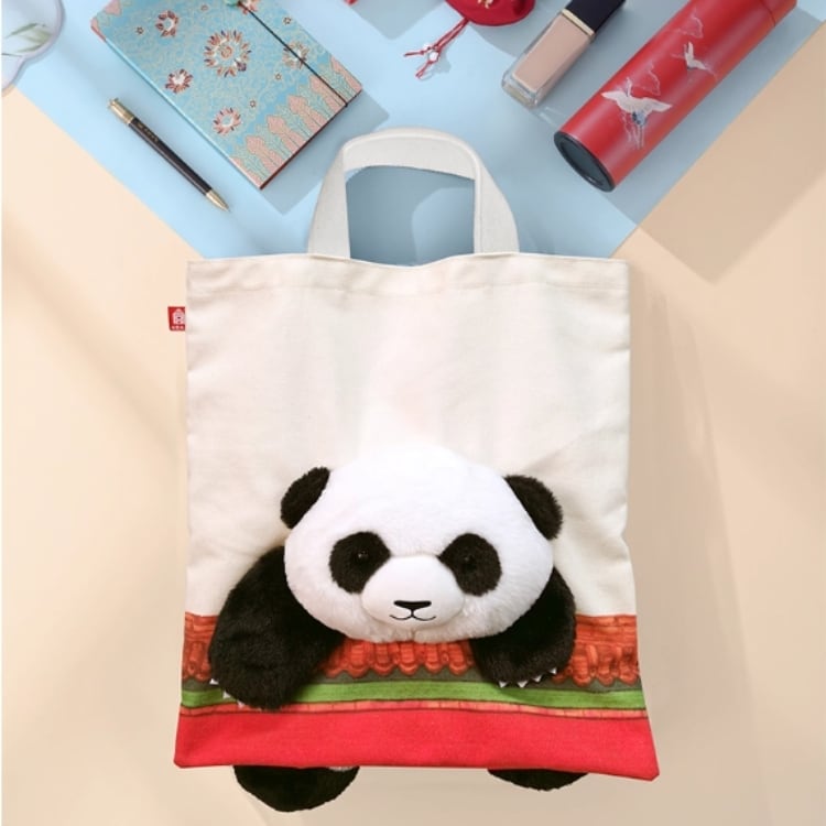 故宮文具の企画「国宝遇见国宝」から生まれた、パンダモチーフのトートバッグ。