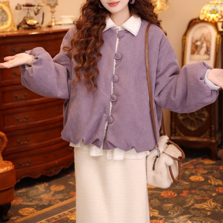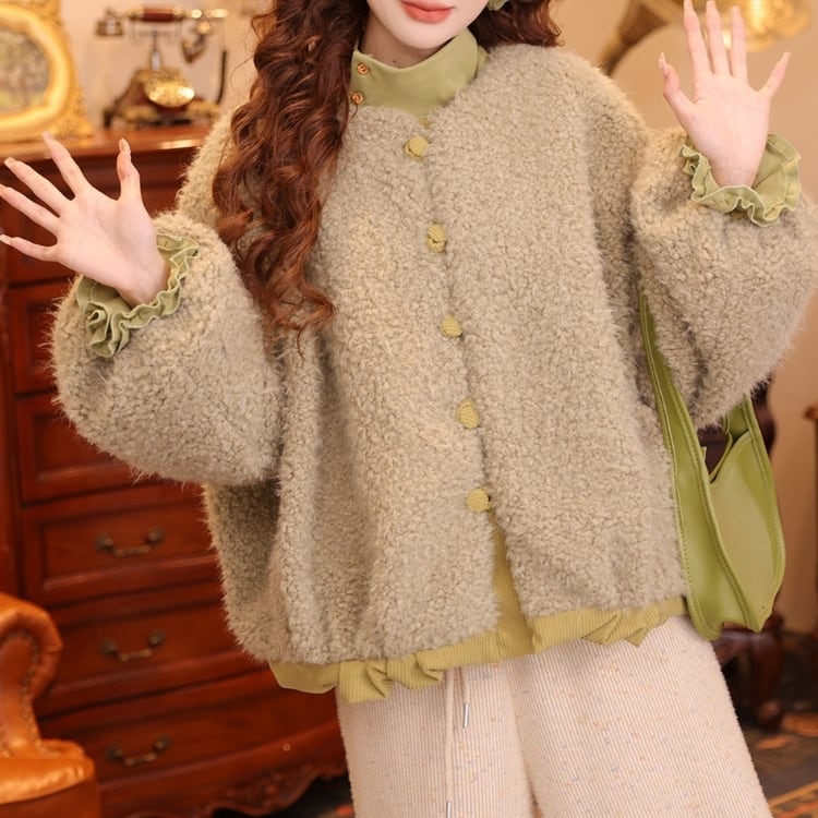 ノーカラーのボアジャケットとなります