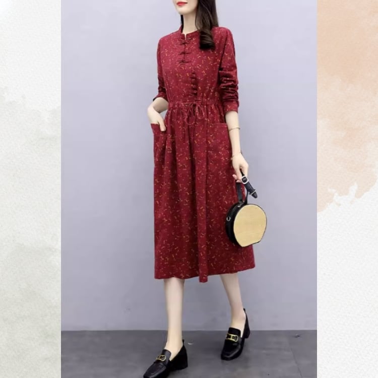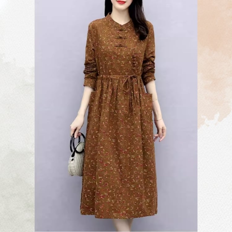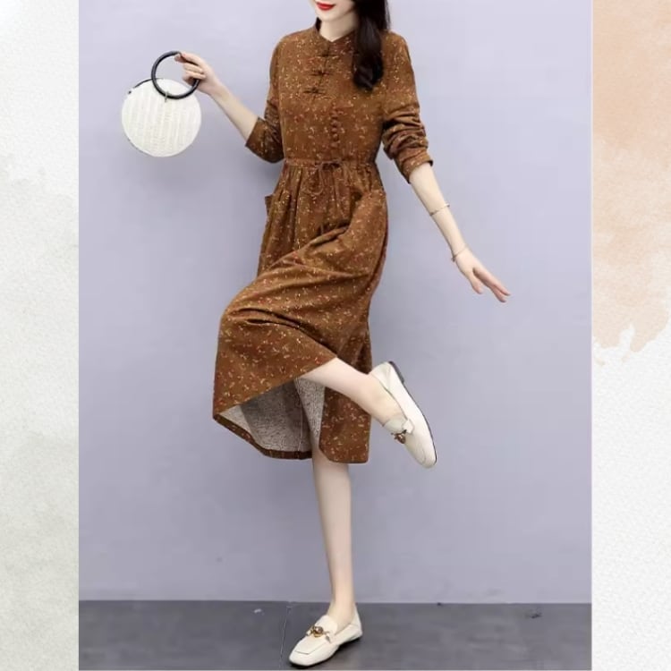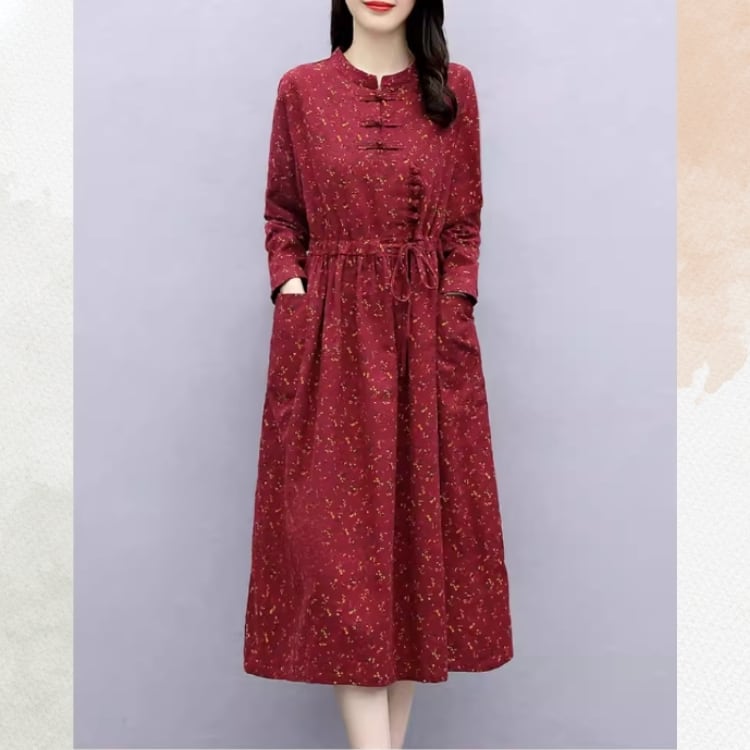 小花柄を全体にあしらった、チャイナデザインのワンピース。