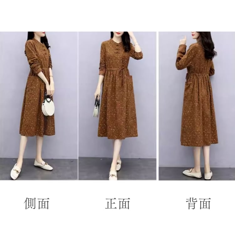小花柄 チャイナデザインワンピース 3カラー YS00132