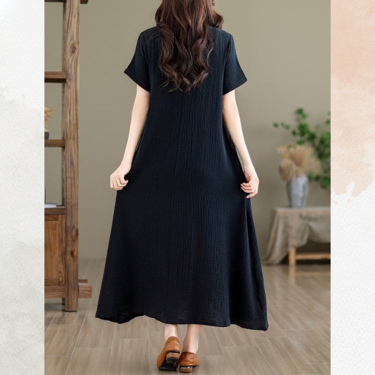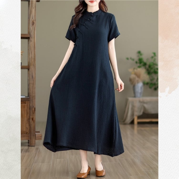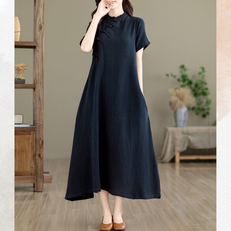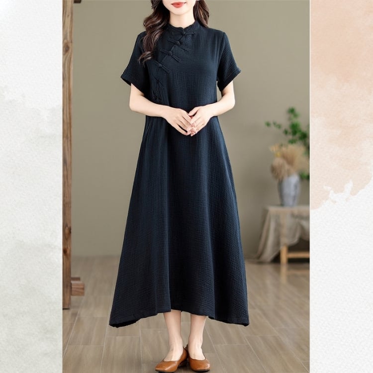 チャイナボタンデザイン ゆったりAラインワンピース YS00223
